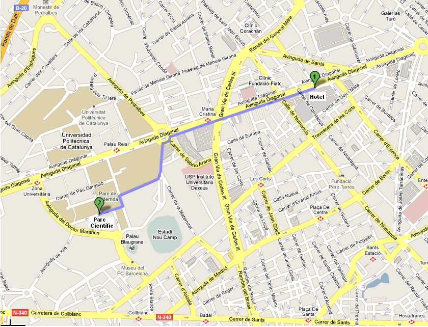 Travel to the SymposiumMain Symposium Friday 17th September 2010 At Barcelona Scientific Park (Parc Cientific). Participants can reach the Conference Auditorium walking (15 min) or by tram. Personal of the organization will be waiting at the hotel hall and will guide the participants in small groups. Click here to see a map of the route. More information can be found on their website http://www.pcb.ub.es. Welcome Dinner, Thursday 16th September 2010 At the Hotel Husa Illa, Avenida Diagonal, 555, Barcelona, Spain.